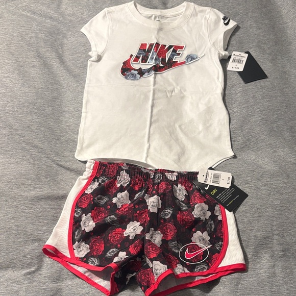 Darling Nike floral shorts and white Tshirt with matching floral Nike logo and swoosh. New with tags!