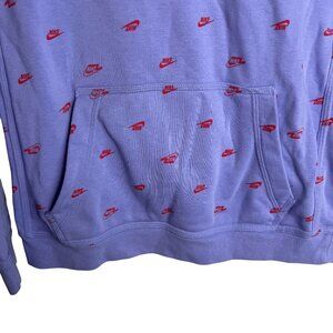 Nike Youth Size Large Purple Hoodie With Red Logo Print & Front Kangaroo Pocket