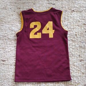 Nike youth size sleeveless Basketball Jersey - Size: MEDIUM 12/14, Colors: Maroon & Gold, Player: #24 (name unknown). The jersey will arrive clean and ready to wear, the lettering is not faded or worn. There is 1-small snag/pull on the front (see pics). Well made, engineered to the exact specifications of the athletes.