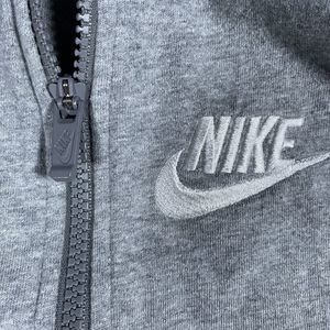 Nike Youth Size Med Gray Zip-Up Hoodie Lightweight White Swoosh Logo Pockets