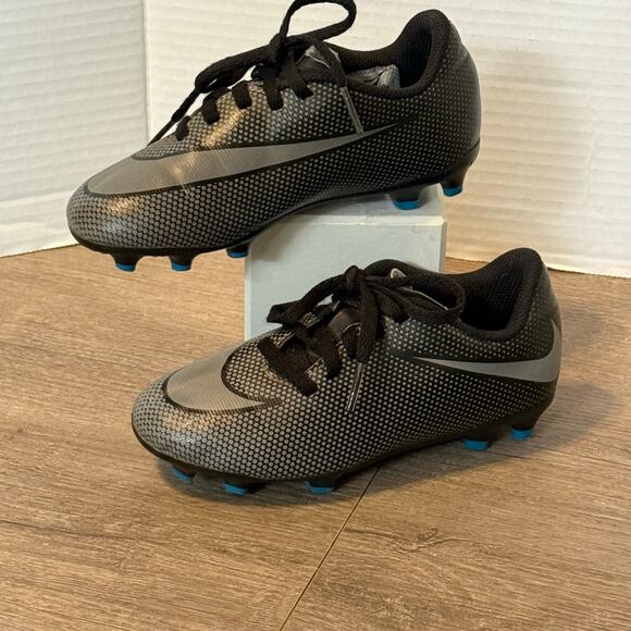 Keywords: Nike youth soccer cleats size 11C kids football boots FG firm ground black gray blue molded studs athletic shoes