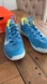 Vibrant blue sneakers with lime accents. Comfortable and stylish for active kids.