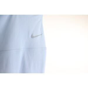 The Nike Zenvy High Waist 7/8 Yoga Leggings in blue are designed for women in size M. These compression leggings feature a solid pattern and are perfect for activewear occasions such as yoga or gym training. With a high waist and 7/8 length, these leggings offer both style and functionality, providing compression in the waist and leg areas. Made with Nike Dri-FIT technology, these leggings are suitable for all seasons and come with pockets for convenience. Ideal for those who prioritize athleisure and sports themes in their wardrobe.