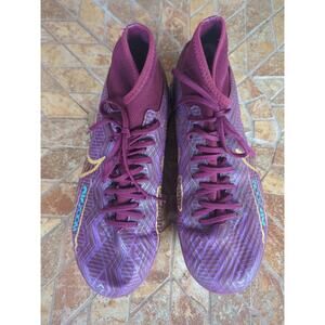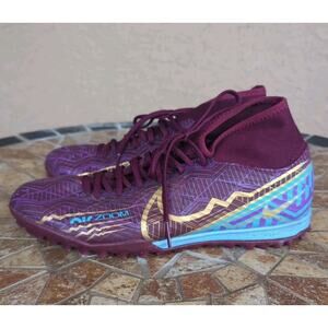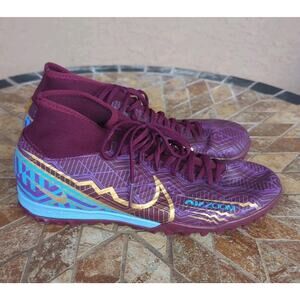 The Nike Zoom Mercurial Superfly 9 Academy Turf cleats in Men's Size 6.5 are a top choice for soccer players looking for performance and style on the field. With a vibrant purple color and a design that showcases the Nike brand, these cleats are sure to stand out. Made in Indonesia and part of the Nike Zoom Mercurial product line, these cleats offer a medium width for comfortable wear during intense games and practices. Ideal for players looking to elevate their game with a high-quality and aesthetically pleasing pair of soccer shoes.