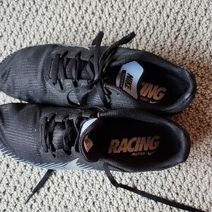 Nike men's black track/running shoes with cleats and tool. Black with silver accents. Great used condition with little-to-no visible wear. Insoles are intact.
