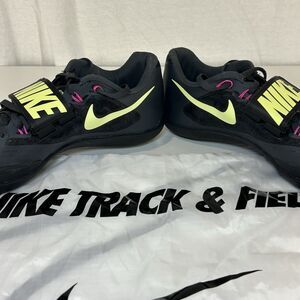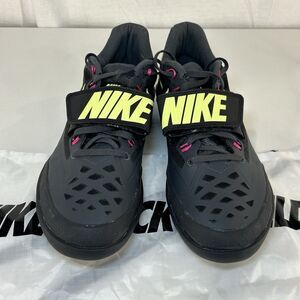 The product is a pair of Nike Zoom Rotational 6 'Anthracite Fierce Pink' sneakers in men's size 8. These athletic shoes feature a hook & loop and lace-up closure, making them suitable for activewear occasions. The design includes a black color scheme with synthetic upper material, perfect for the summer, fall, and spring seasons. The Nike Zoom Rotational 6 sneakers are part of the Nike Zoom Rotational product line, designed for track and field performance. Made in China, these sneakers come with a bag for easy storage and transportation.
