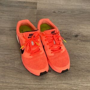 Vibrant coral Nike sneakers. Ideal for active and casual use.