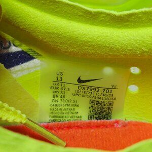 The Nike ZoomX Dragonfly XC Cross-Country Running Spikes DX7992-701 in Men's Size 13 is a stylish and high-performance sneaker designed for cross-country running. Featuring a lace-up closure and a low-top design, this shoe offers a comfortable fit for athletes. The outsole is made of synthetic material with metal spikes, providing excellent traction and support for track and field activities. The green color and solid pattern add a fashionable touch to this athletic shoe, making it a great choice for summer, fall, and spring seasons. Made with Vaporweave upper material and a foam insole, this Nike ZoomX model is a top choice for active individuals.