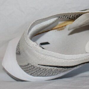 Nike ZoomX Vaporfly 3 White/Particle Grey/Metallic Silver/Dark Smoke Grey FlyKnit Running Shoes Men’s Size 12.5. Designed for comfort and performance, Vaporfly offers a snug fit with stretchy, durable and breathable upper material, with laces positioned off-center. Known for their ZoomX technology, which provides optimal cushioning and responsiveness. Worn only a couple of times to give them a try and only on the treadmill - decided I prefer the Alphafly and these fit a bit snug for me. Soles, upper material and laces are in excellent, like-new condition - pictured from all angles. There is a small glue mark from the manufacturer on the inside of the footbed - not visible from outside, but pictured as well. Will ship with Nike drawstring bag pictured.