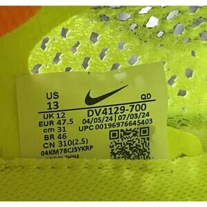 The Nike ZoomX Vaporfly Next% 3 Men's Shoes in size 13 features a low top design with a lace-up closure for a secure fit. This fast pack volt green sneaker is part of the Nike ZoomX product line, designed for athletic activities like walking, racing, and running. The breathable mesh upper material provides comfort and cushioning, making it suitable for all-day wear in a colorful and athletic theme. Designed for men, these shoes offer a standard shoe width and are manufactured in China.