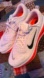 Nike women's athletic shoes. White upper with black swoosh. Red accents on the sole. Perfect for running and training.