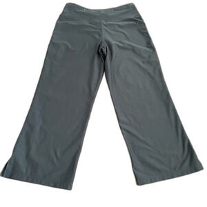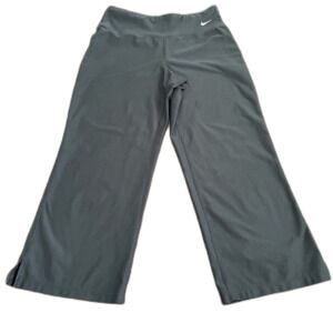 Elevate your workout wardrobe with these Nike active Capri pants. The solid black wide leg gauchos are perfect for any activewear occasion and are available in size XS. The pants are designed with the brand's signature quality and style in mind, making them a great addition to any fitness enthusiast's collection. The capri style and regular size type make these pants a versatile choice for any workout outfit, while the solid pattern and black color add a touch of sophistication to the look. Ideal for women, these pants are perfect for any fitness goal and can be paired with your favorite activewear top for a comfortable and stylish workout ensemble.