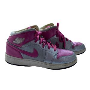 Nike air Jordan 1 Mid GS Metallic Silver/Fusion Pink Girls Size 6Y Basketball