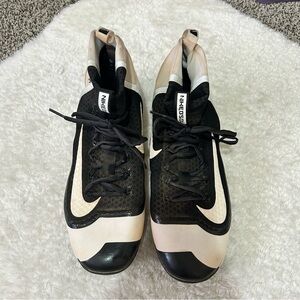 Black and white metal baseball cleats. High top