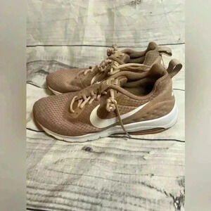 Nike air, pink and white tennis shoes. Size 10.In good condition other than a small stain pictured