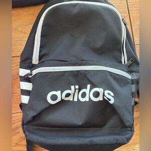 Adidas Backpack β Classic black with white stripes and logo. Sturdy build, zip front pocket, and side mesh.