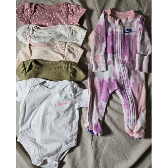 Nike and Cloud Island Baby Girl Newborn Bodysuit and Sleeper Bundle 6 Piece Lot