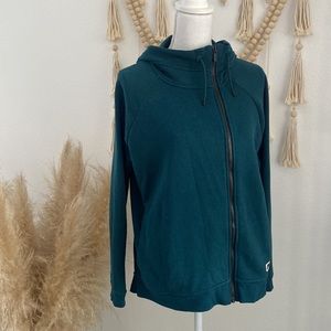 Nike asymmetrical zip up hooded sweatshirt teal fleece hoodie jacket medium