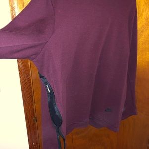 Nike athletic hoodie, has a side zipper, larger neck roll, and hood. Size is xxl I’m usually a size L and it fits a little loose. It’s like a dark red wine/purple.
