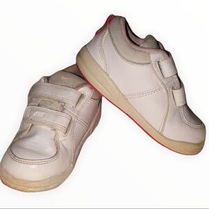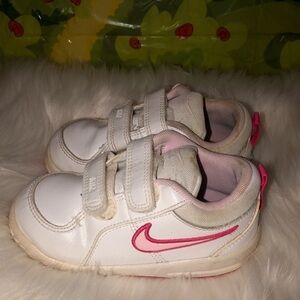 Nike white with pink logo everyday tennis shoe Size 6 C 12cm Preloved