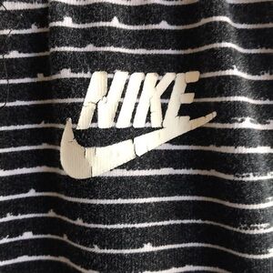 Nike black and white “Just Do It” leggings, size M. Pretty good preowned condition. Some cracking on front logo, as shown. No other but obvious signs of wear.