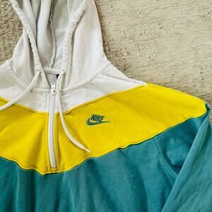 Nike blue green color block quarter zip cropped hoodie woman’s large