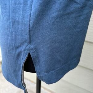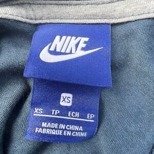 Nike size XS, racerback, blue with teal swoosh. Slits at hips, longer in back. Cotton polyester blend fabric.