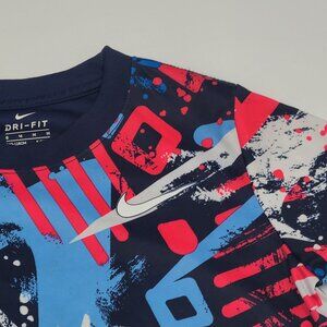 -Navy, blue, and neon coral Dri-Fit tee and shorts set from Nike in size 6