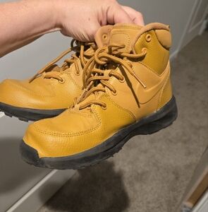 Boys Nike Boots. size 3y color wheat. Great condition barley worn. tiny black mark see pics.