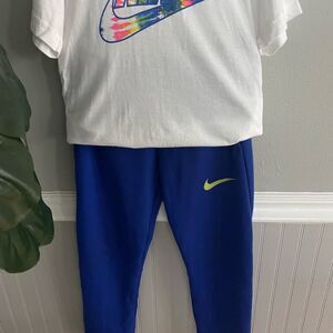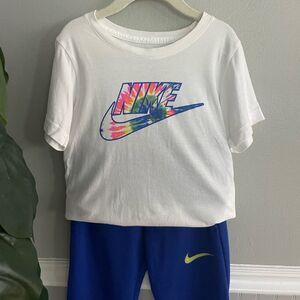 Nike boys Tye Dye White Blue T-shirt and Jogger outfit Bundle size 7