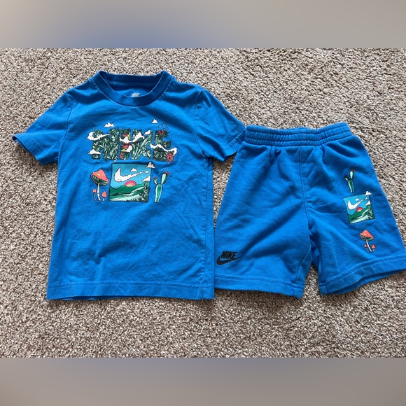 Nike boys blue matching outfit set 4T with a short sleeve shirt and elasticated waste shorts. No rips, stains, or holes.