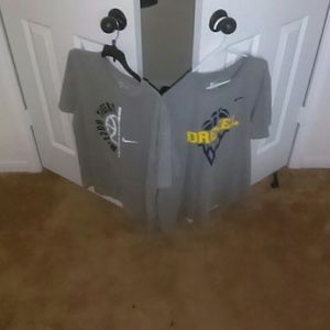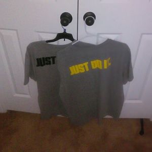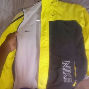 One expensive yellow reversible Nike jacket a black stripped Nike jacket Two 40$ Nike shirts