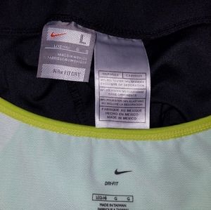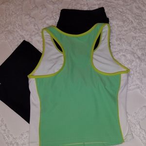 Nike tank and pants. Both are size large. Pants are black bootcut capri length. The tank is green and white with shelf bra. Great condition!