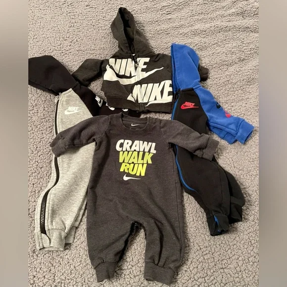 Used Nike baby clothes size 3 months in good condition one sweater and 3 one piece outfits