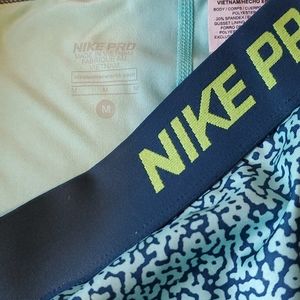 Turquoise and navy blue patterned Nike workout capris, size women's medium. Very stretchy and flattering in the butt. In excellent condition and only worn twice. Make me an offer!