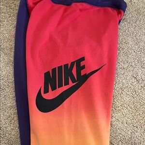 Experience the perfect blend of style and comfort with these Nike leggings, featuring a bold red and purple color scheme. Designed for athletic performance, they offer a snug fit with a stretchy material that moves with you. Ideal for workouts or casual wear, these leggings ensure you stand out with their vibrant hues.