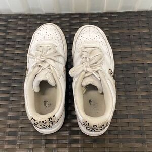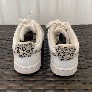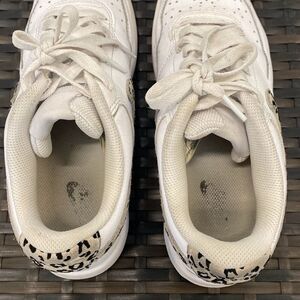 Nike court version low leopard swoosh sneakers women’s size 7.5 in good preowned condition normal wear and tear dirty on the inside dirty on the bottom of the shoes overall in good shape a little dirty around the white trim of the shoes see pictures for more details