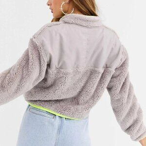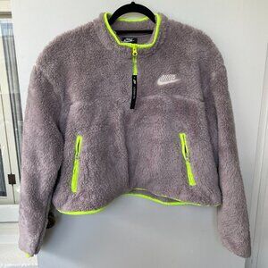 Gray Nike fleece with neon seams. Quarter zip up, fits releaxed an slightly cropped. Super soft fleece material. Never worn. Small imperfection on back shoulder (see last pic).