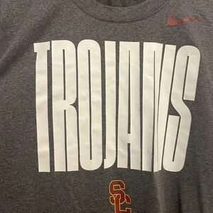 Gently worn USC Trojans Nike dri fit tee size small. Dark gray with white lettering. University of Southern California.