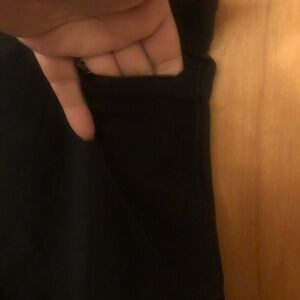 Adjustable waist ties . Black with reflective strips perfect for evening runs . 2 pockets .