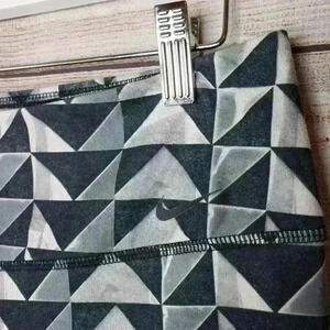 Nike dri-fit women's black and gray geometric leggings size large. In excellent pre-owned condition. No flaws. Measurements are approximate and taken flat.