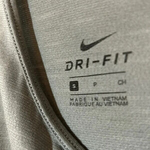 This is a light gray Nike dri fit tank top. Hundred percent polyester. Orange swoop on the front Kris Kross in the back.