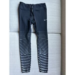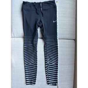 Nike dri fit running tights leggings black wtih silver stripes size medium