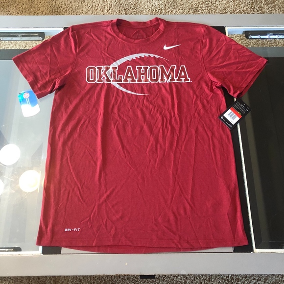 Brand New With Tags - Nike Dri-Fit, "Oklahoma Sooners" Performance, maroon/grey t-shirt in size MENS Large. -NWT! 100% Authentic Nike Product!