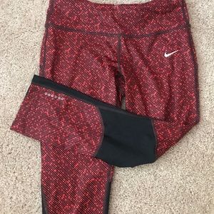 Nike dri-fit crop pants, size medium. Red, and black design, only one once and in perfect condition.