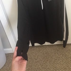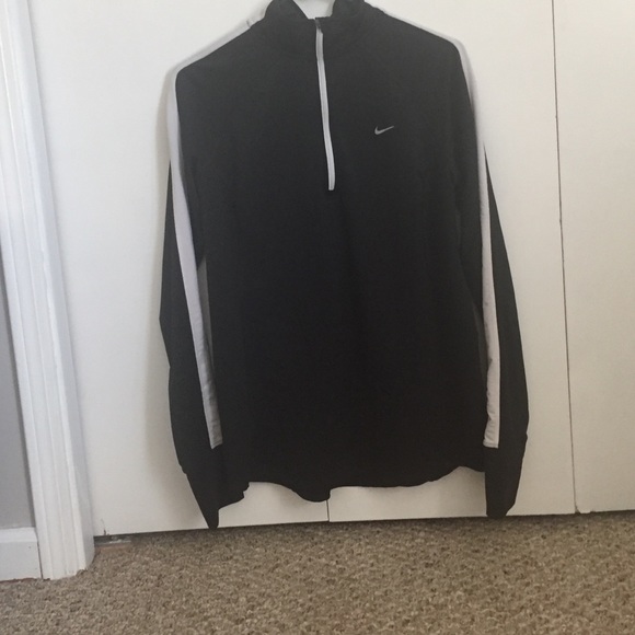 In perfect condition size large black and white dry fit running shirt. Has finger holes to keep ur hands warm perfect for that fall running weather!!! Feel free to make me an offer😁✔️