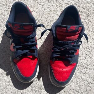 Dynamic Nike sneakers featuring bold red and navy design. Ideal for everyday style. Excellent condition