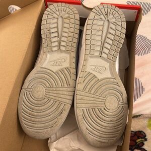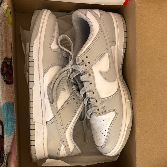 Grey fog Nike dunks size 6.5 men/ 8 women. Worn two to three times. Nothing wrong w them but just a bit big for me.