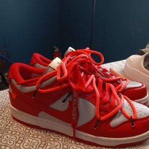 Nike dunks off white University red very clean Warn very few times. Box not included but they are authentic