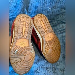 Nike dunks sky high noble red suede camo hidden wedge sneaker 5.5. In very good used condition. Yellowing of mid sole.